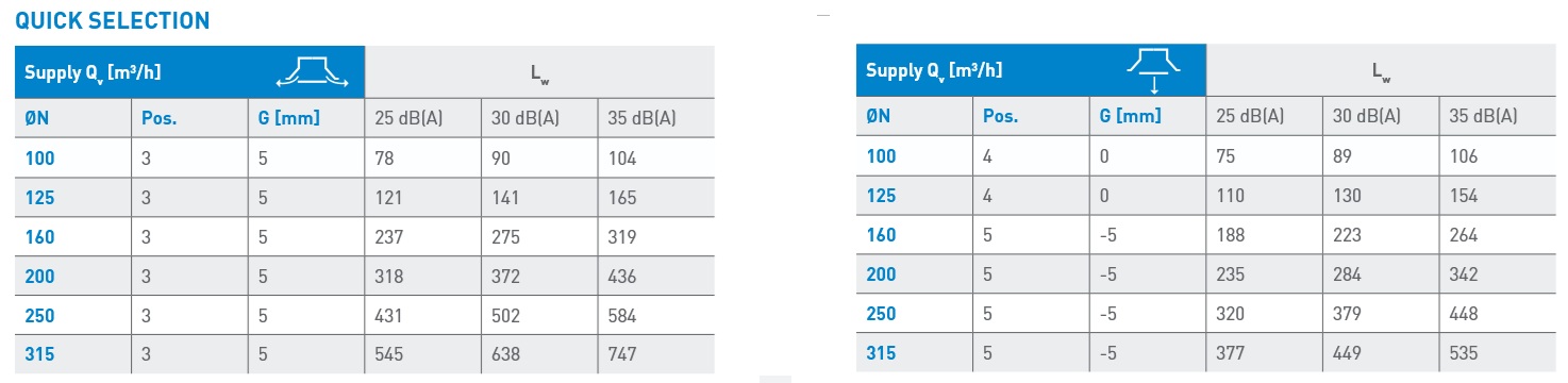 Architektonický stropný difúzor s nastaviteľným jadrom pre horizontálne a vertikálne prúdenie, 39–1405 m³/h, Ø100-315 mm.