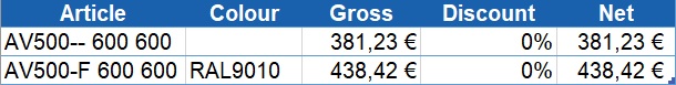 Mriežka typu AV500 je určená na prívod a odvod chladeného a ohriateho vzduchu v technických alebo počítačových miestnostiach. Mriežka sa používa so zdvihnutými modulárnymi podlahovými systémami 600 x 600 mm a rozvodnou sieťou podlahového vzduchu.