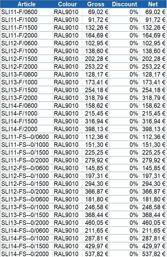 Nastaviteľný štrbinový difúzor typu SLI je vhodný pre prívod a odvod chladeného a ohriateho vzduchu. Je vybavená sadrokartónovou súpravou pre bezrámové osadenie. Slot je individuálne nastaviteľný a je vybavený 2 špeciálne navrhnutými diskrétnymi deflektormi. ak je ideálny horizontálny vzor prúdenia vzduchu, ktorý je možné nastaviť na 180° (vertikálny a horizontálny prúd vzduchu). Dostupné v krátkych krátkych a vo viacerých stredných a koncových častiach na lineárnom difúzore digitálnej dĺžky.