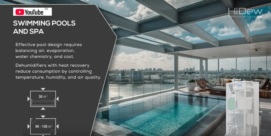 Odvlhčovače série SRV s integrovaným rekuperátorom sú plne autonómne a určené na použitie v malých bazénoch, SPA a občianskych, bytových a komerčných prostrediach s vysokou latentnou záťažou, kde je vyžadovaná 24-hodinová/denná prevádzka.