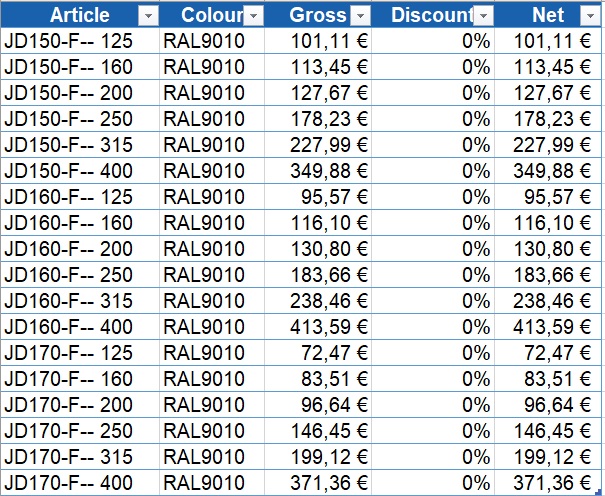 | 160 JD | - | 160 mm | 268 m3 / h | 325 m3 / h | 393 m3 / h |