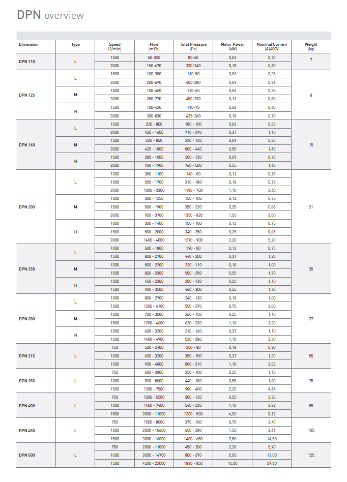 Najnovšia generácia ventilátorov DPN bola vyvinutá na základe najmodernejších techník. Pri tomto vývoji boli najdôležitejšími kritériami spoľahlivosť, životnosť a efektívnosť nákladov.
